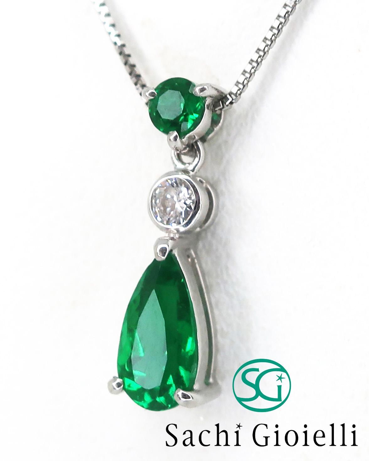 0.50カラットのペアシェイプカットのエメラルドは、内包物もほとんどみられないほどの透明度と深いテリを合わせもつ逸品です。コロンビア産の石底から湧き出るようなグリーンカラーが見ていると引き込まれそうなほどのオーラを放っています。この美しいエメラルドを最大限引き立たせるようにラウンドカットのエメラルドとダイヤモンドを縦にセッティングした上品でシンプルなデザインです。バチカンの0.05カラットのエメラルドも小ぶりですが美しいテリと輝きを発しています。着けると圧倒的なテリと煌めきで胸元を華やかで優美にみせてくれます。商品には販売証明書を無料でおつけ致します。