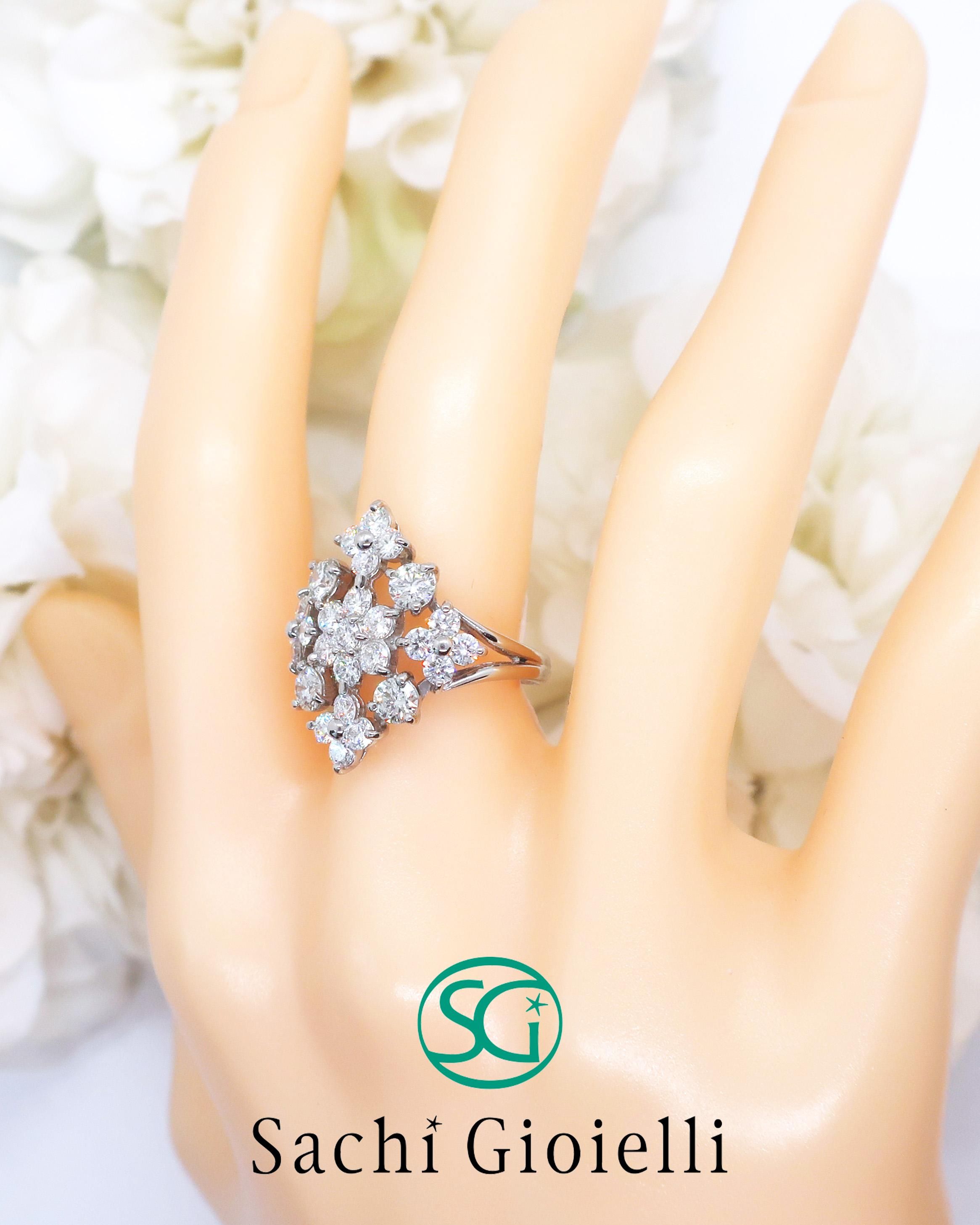2.00カラット 指先に咲くダイヤモンドの花園のような可憐なリング