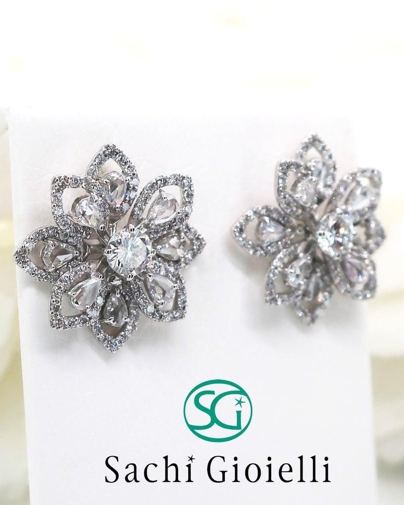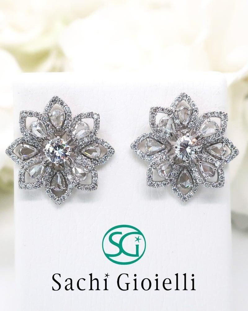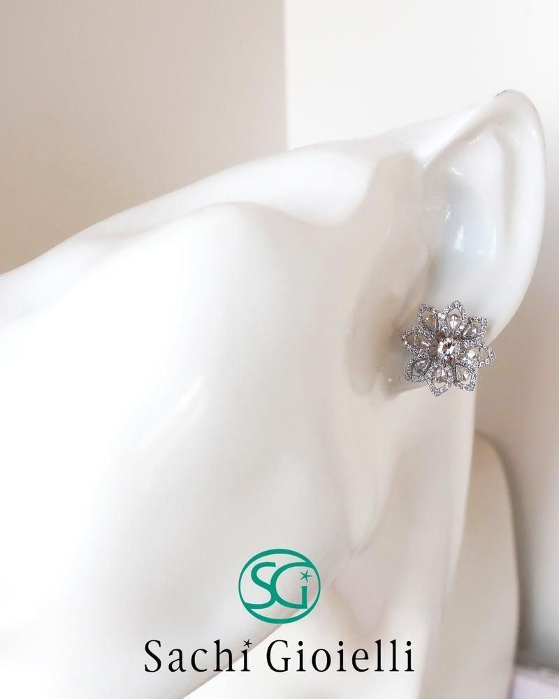 立体的に構築されたデザインに、ローズカットダイヤモンドを繊細にセッティング。
