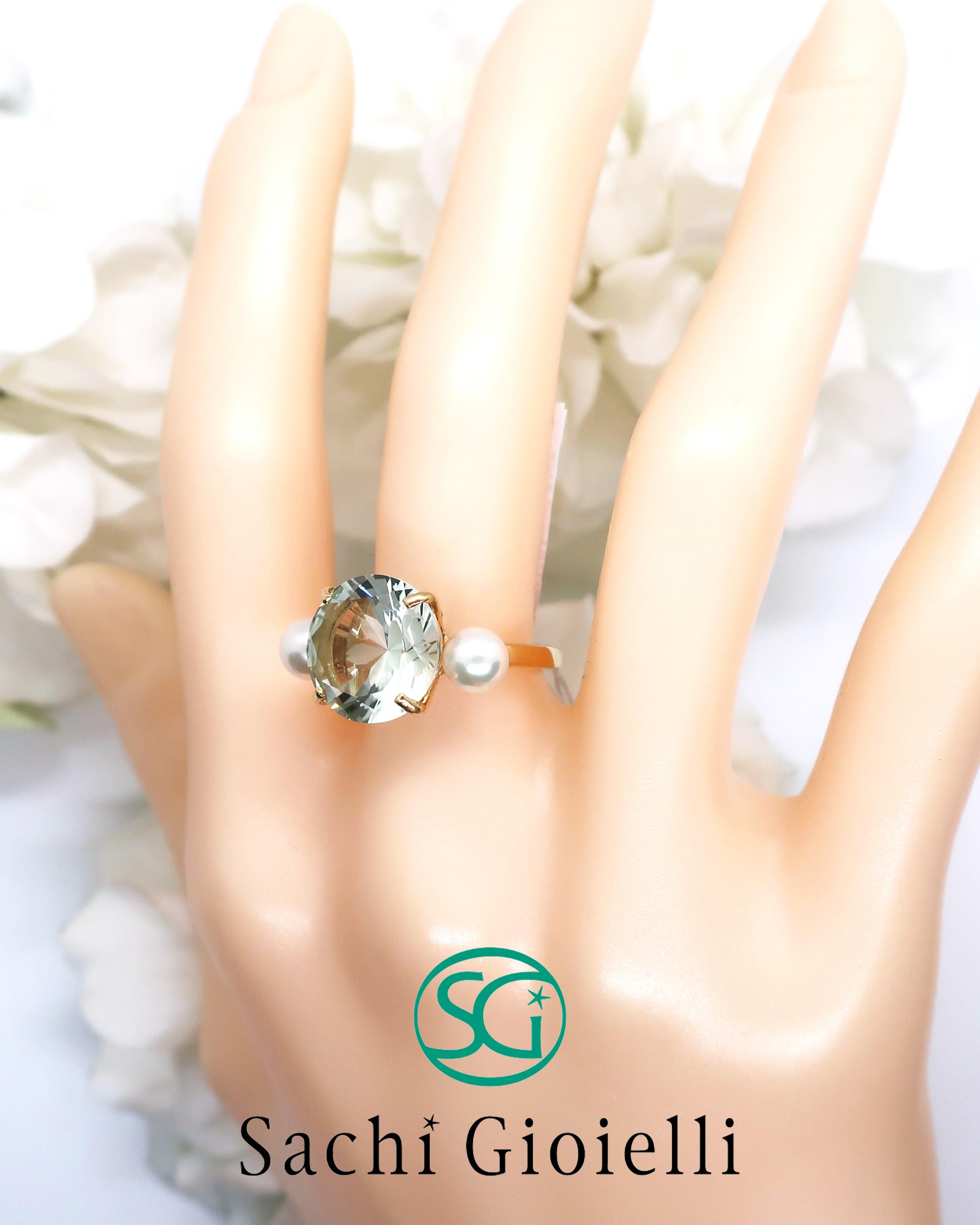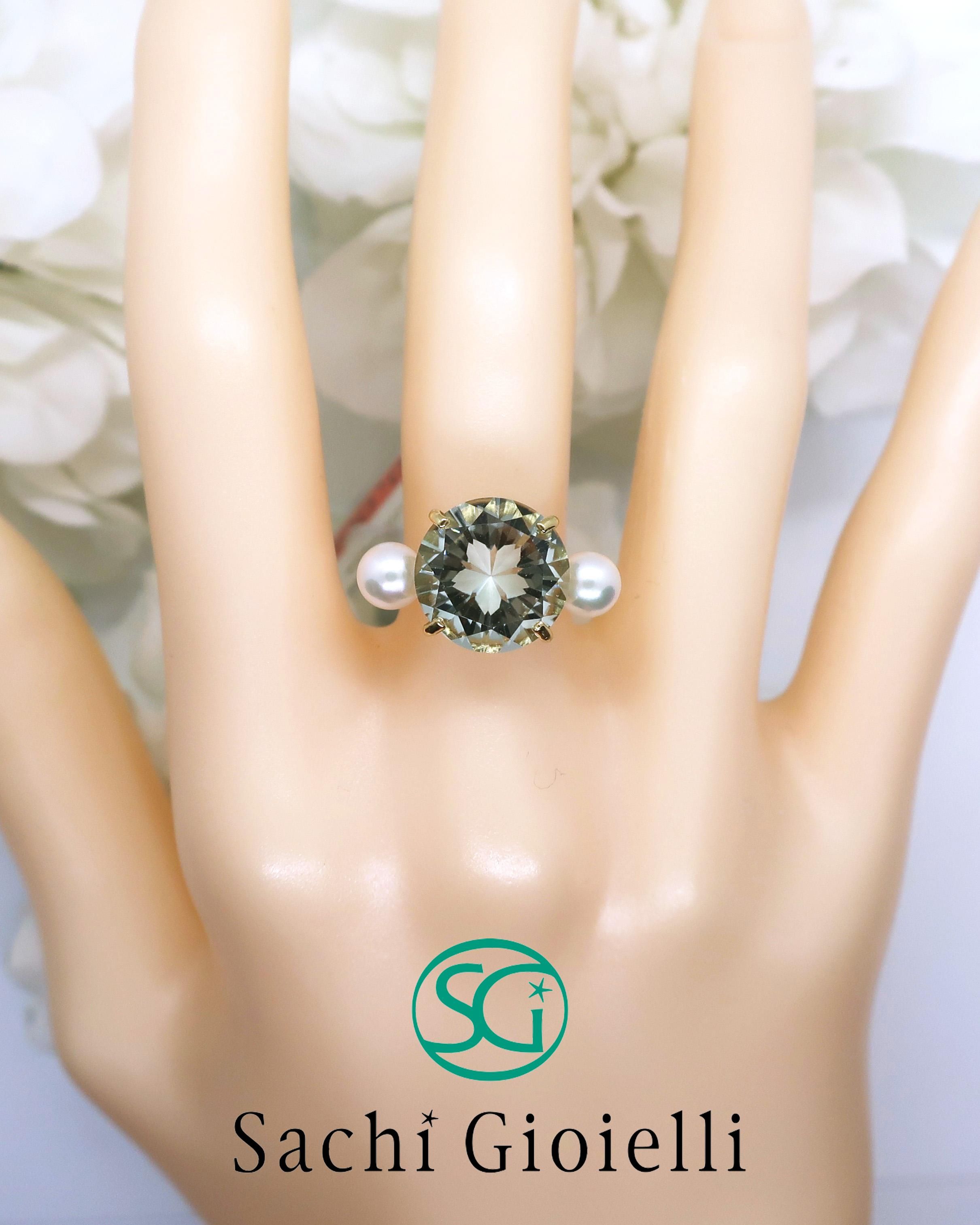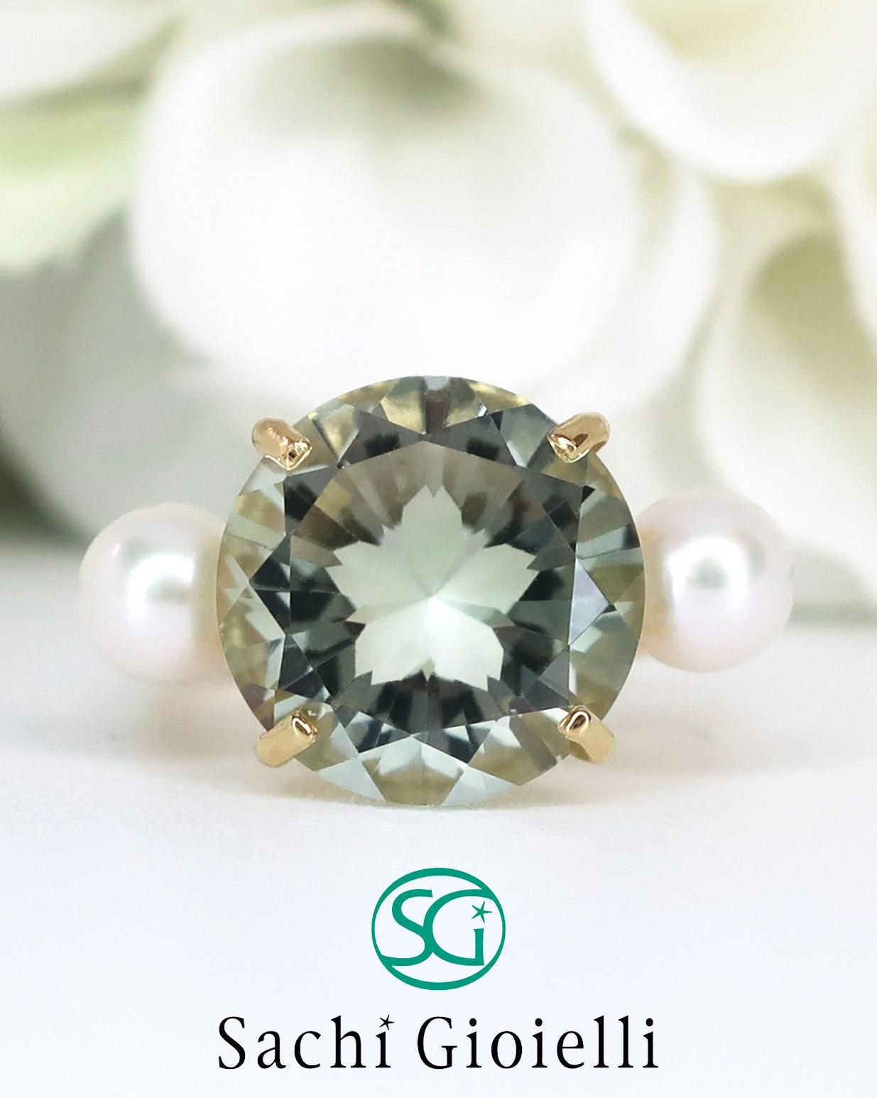 グリーンクォーツ5.61ct/あこやパール5.5mm×2