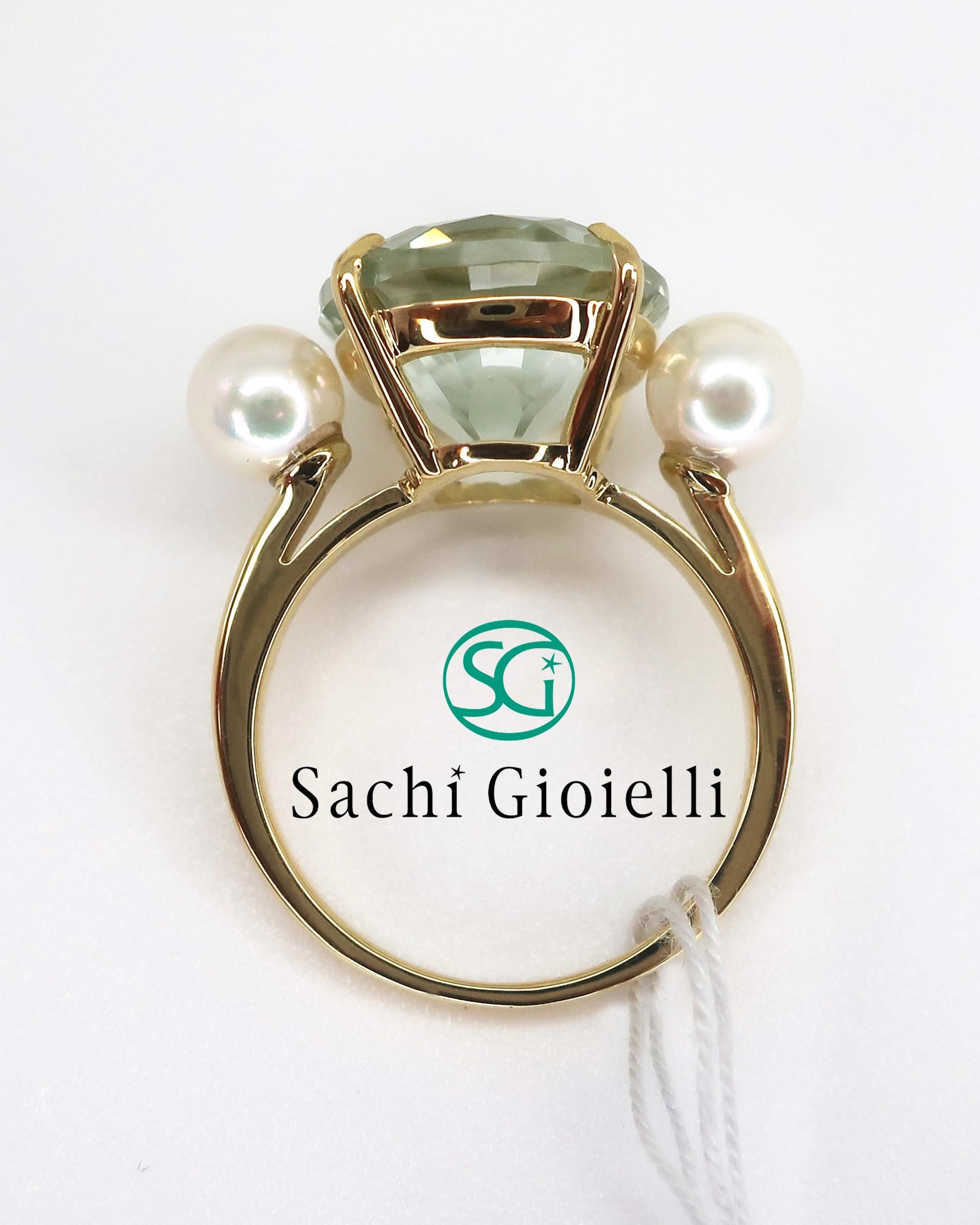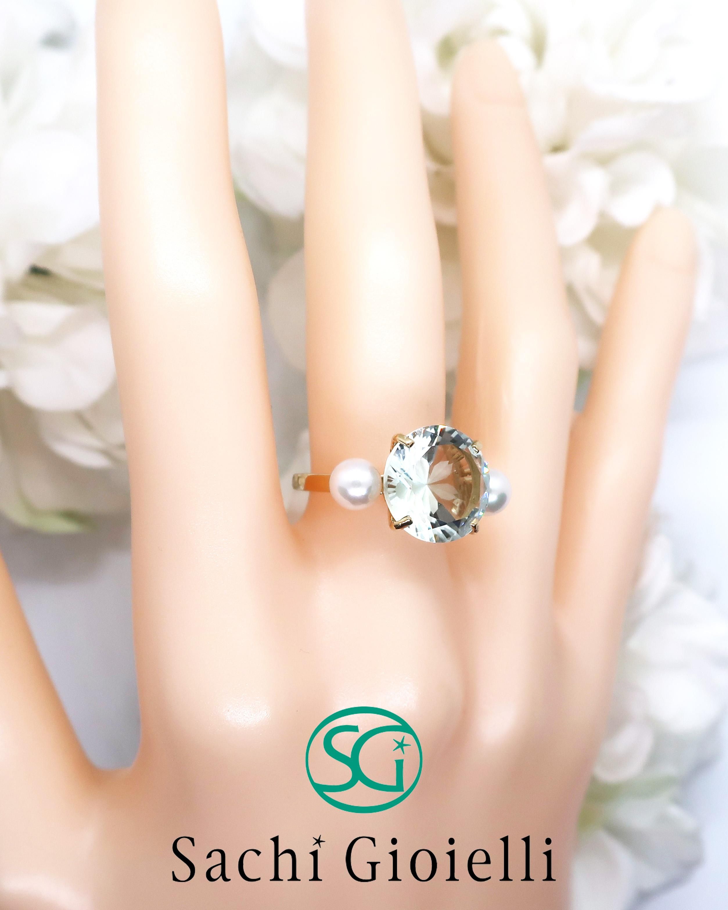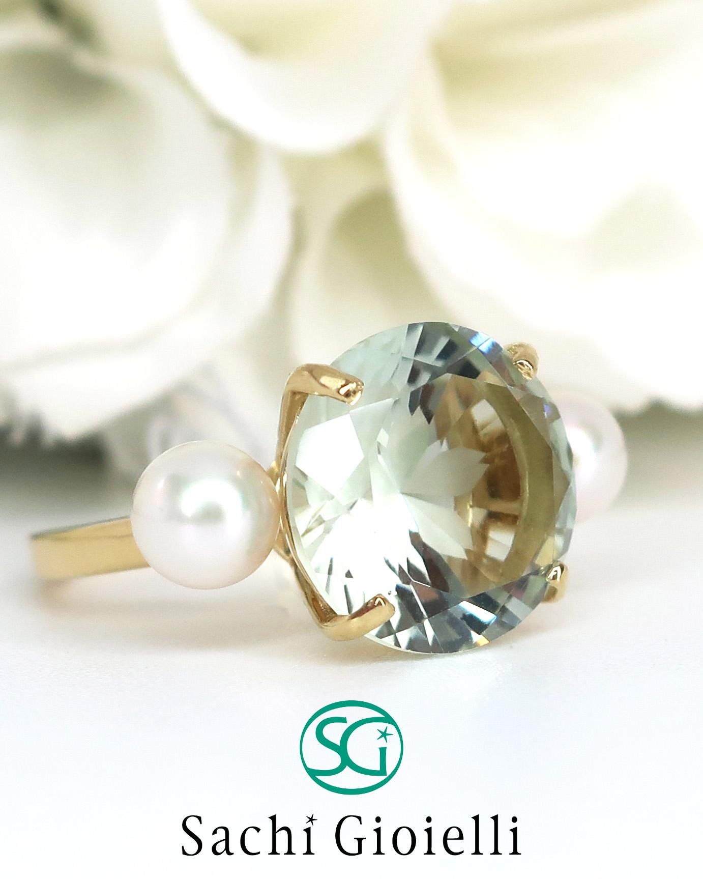 グリーンクォーツ5.61ct/あこやパール5.5mm×2