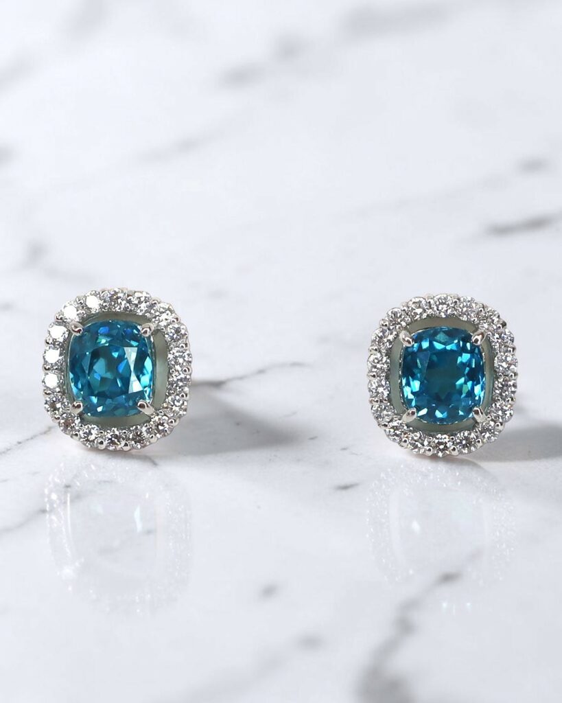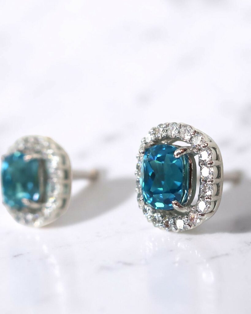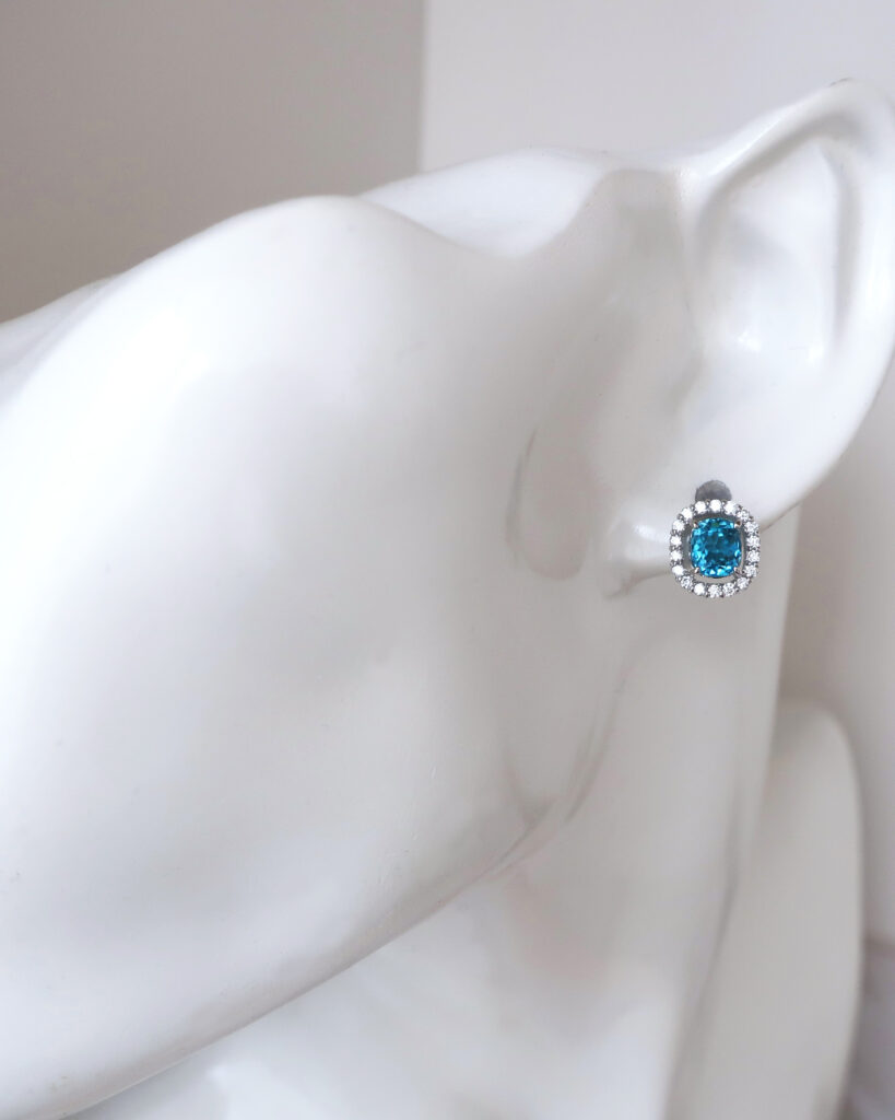 本日は、鮮やかな深いブルーがとても美しいブルージルコンのピアスをご紹介いたします。
