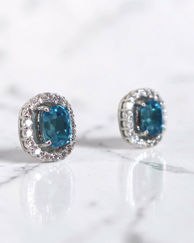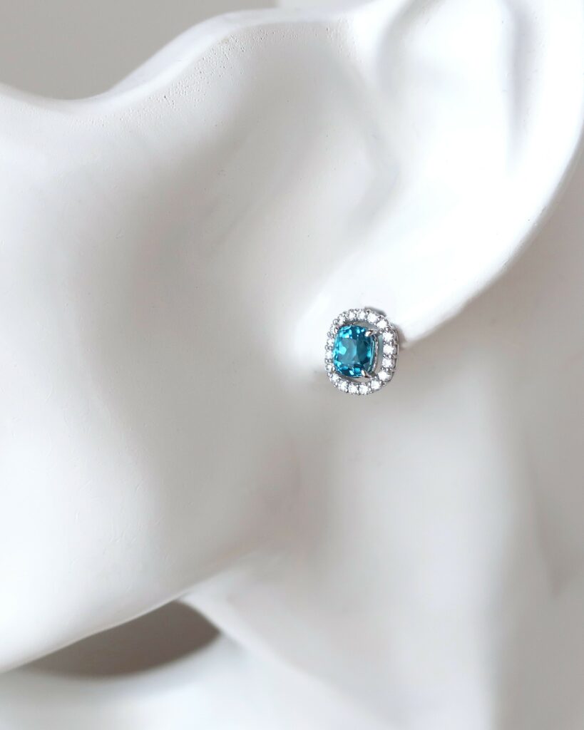キラキラと輝くブルージルコンのピアスをいかがでしょうか?