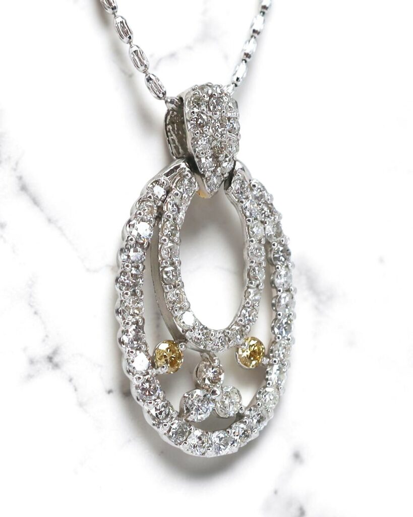 このペンダントの魅力は、トータル2カラットものダイヤモンドを贅沢に散りばめているところです✨