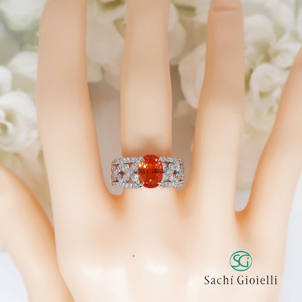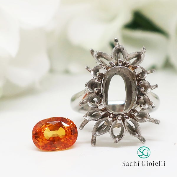 ご主人様が奥様のためにスリランカで購入されたオレンジサファイアを、