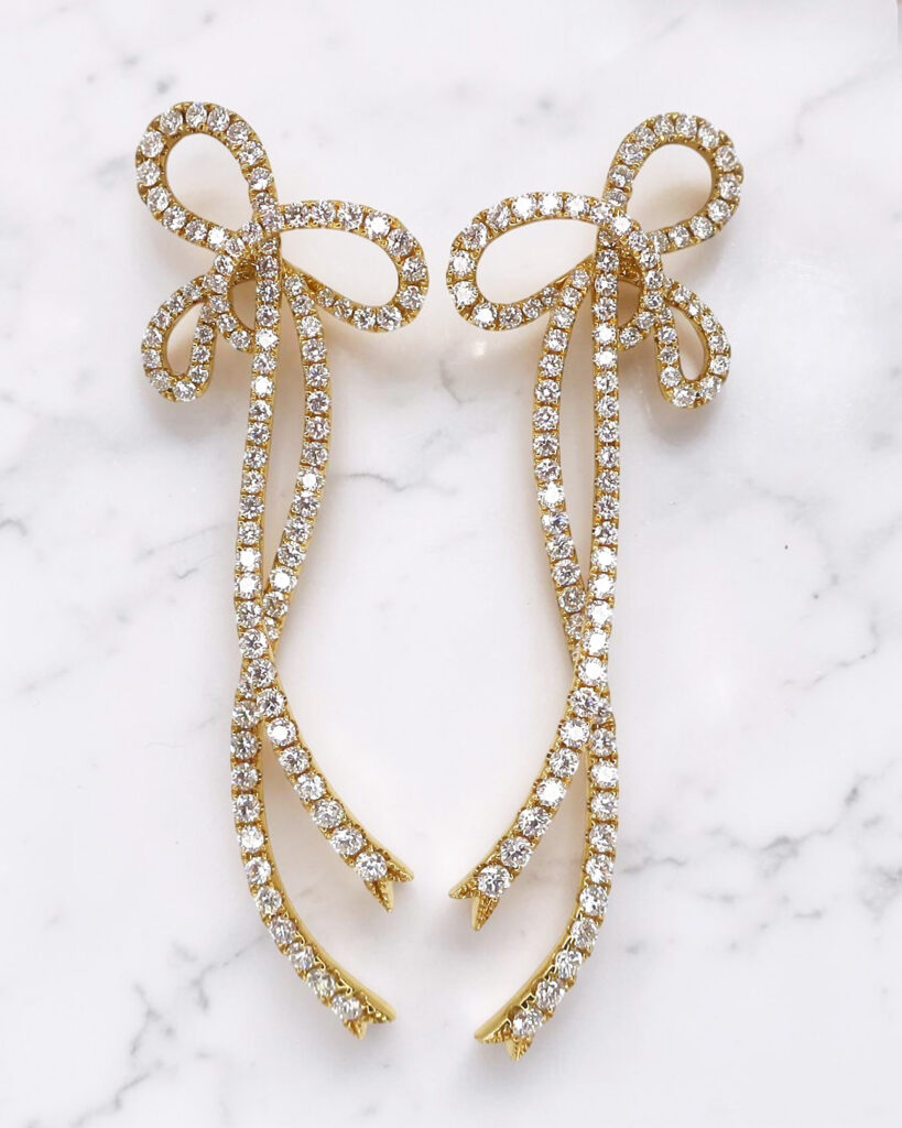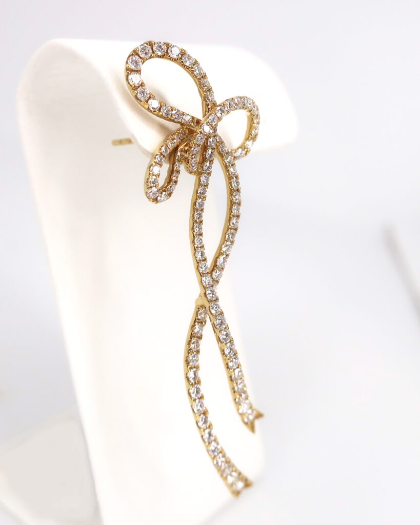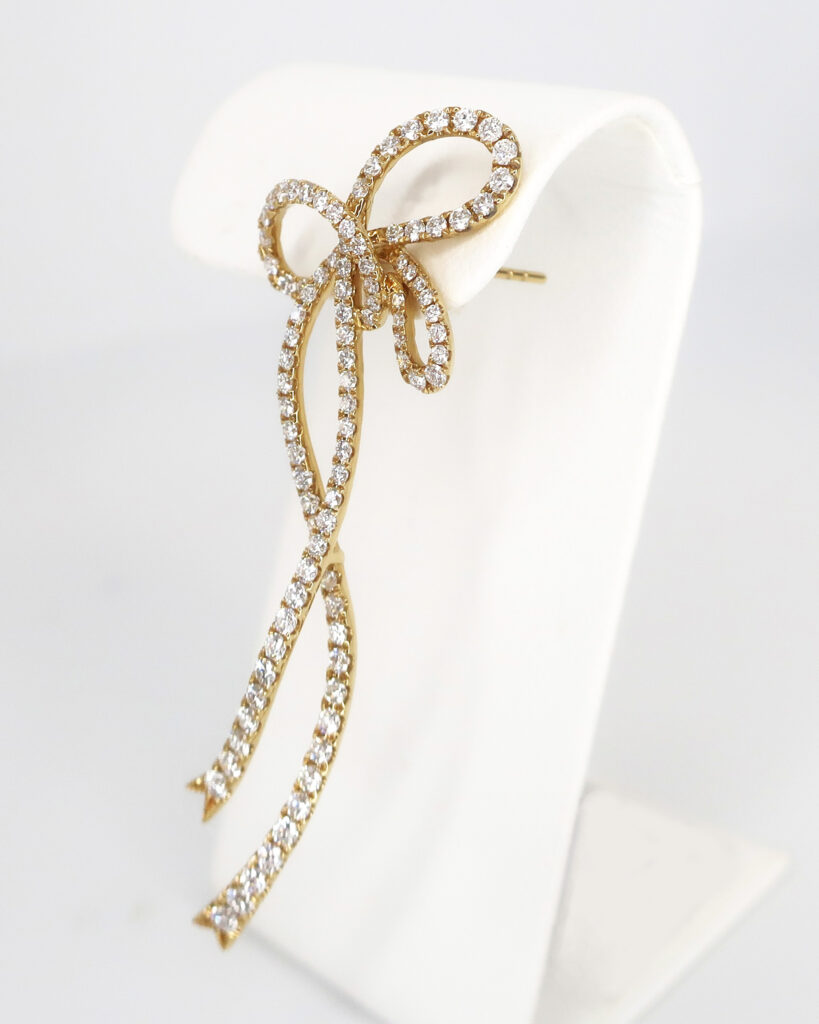 細やかに敷き詰められたダイヤが、リボンの曲線に沿って繊細に煌めき、華やかさの中にも気品を感じさせてくれます。